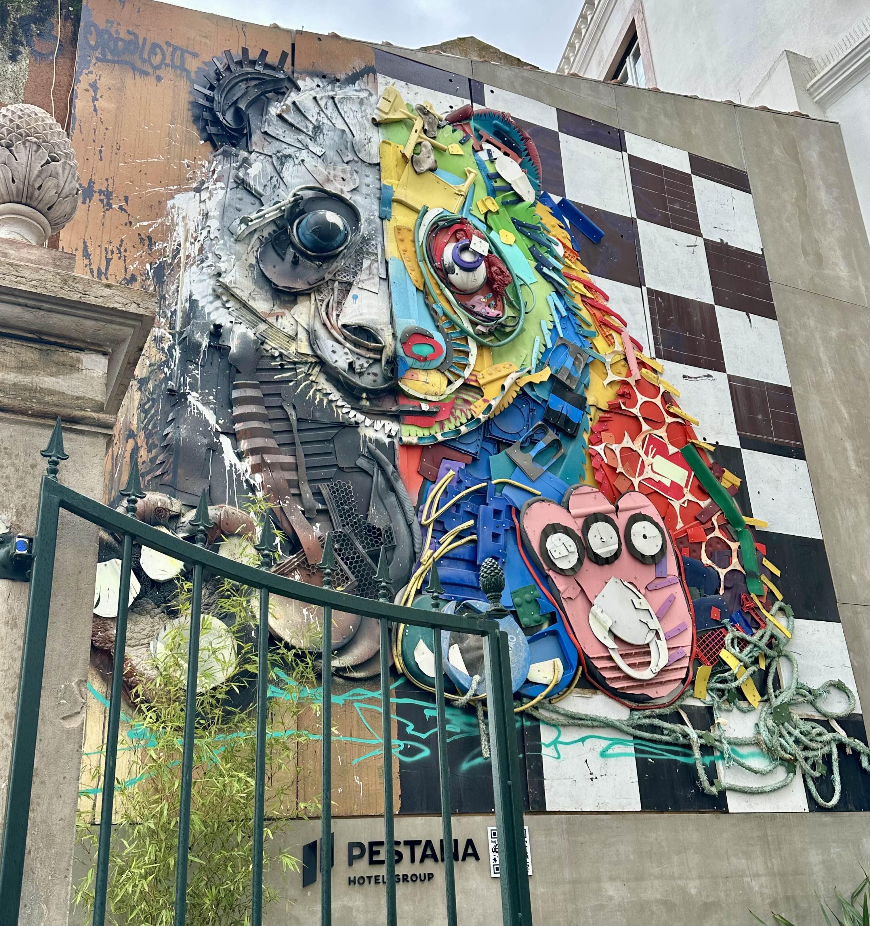 맞은편에는 또 다름 쓰레기로 만든 벽화가 있다. 식당 안으로 들어가야 해서 대문에 가서 찍어본다.