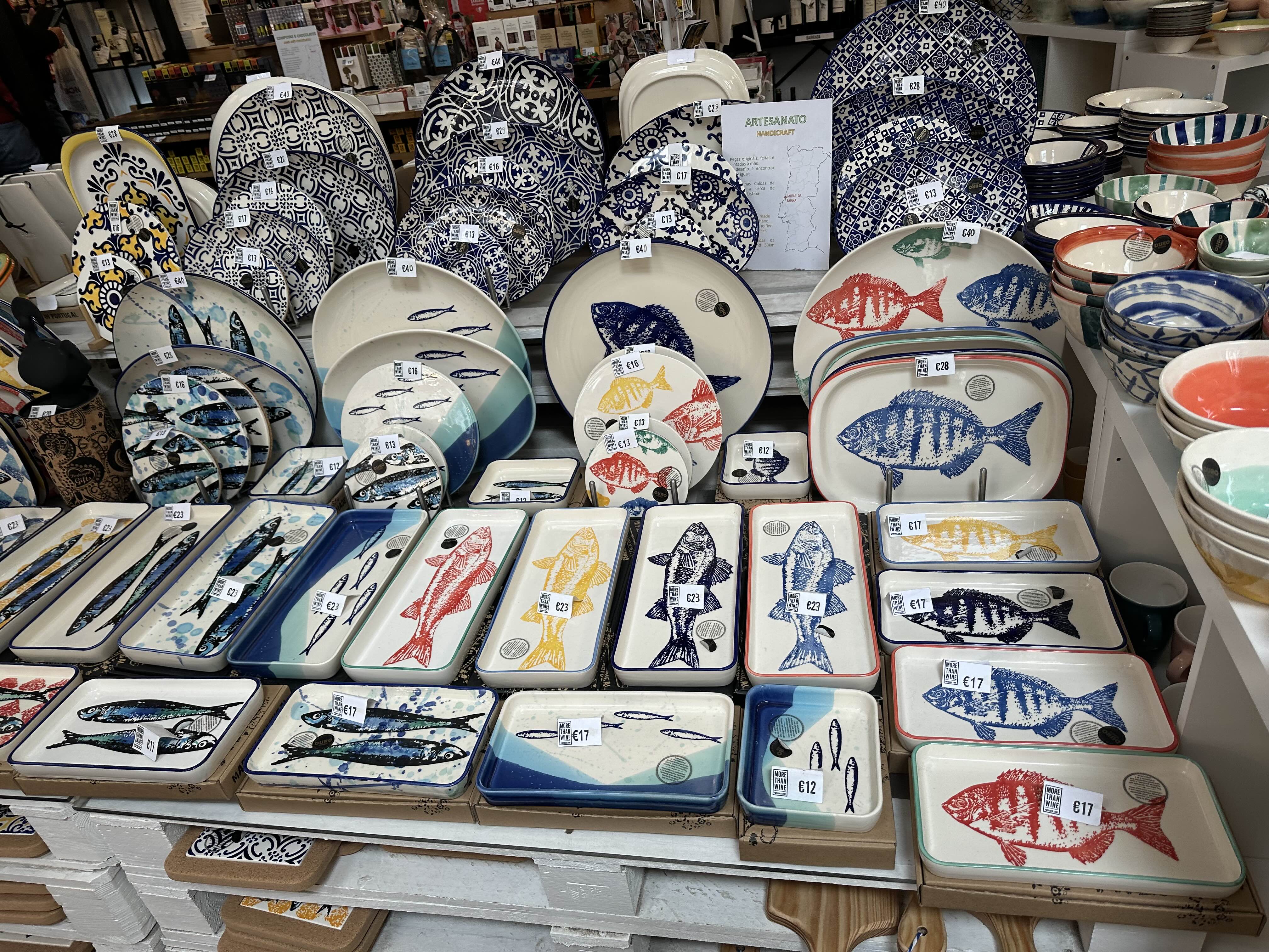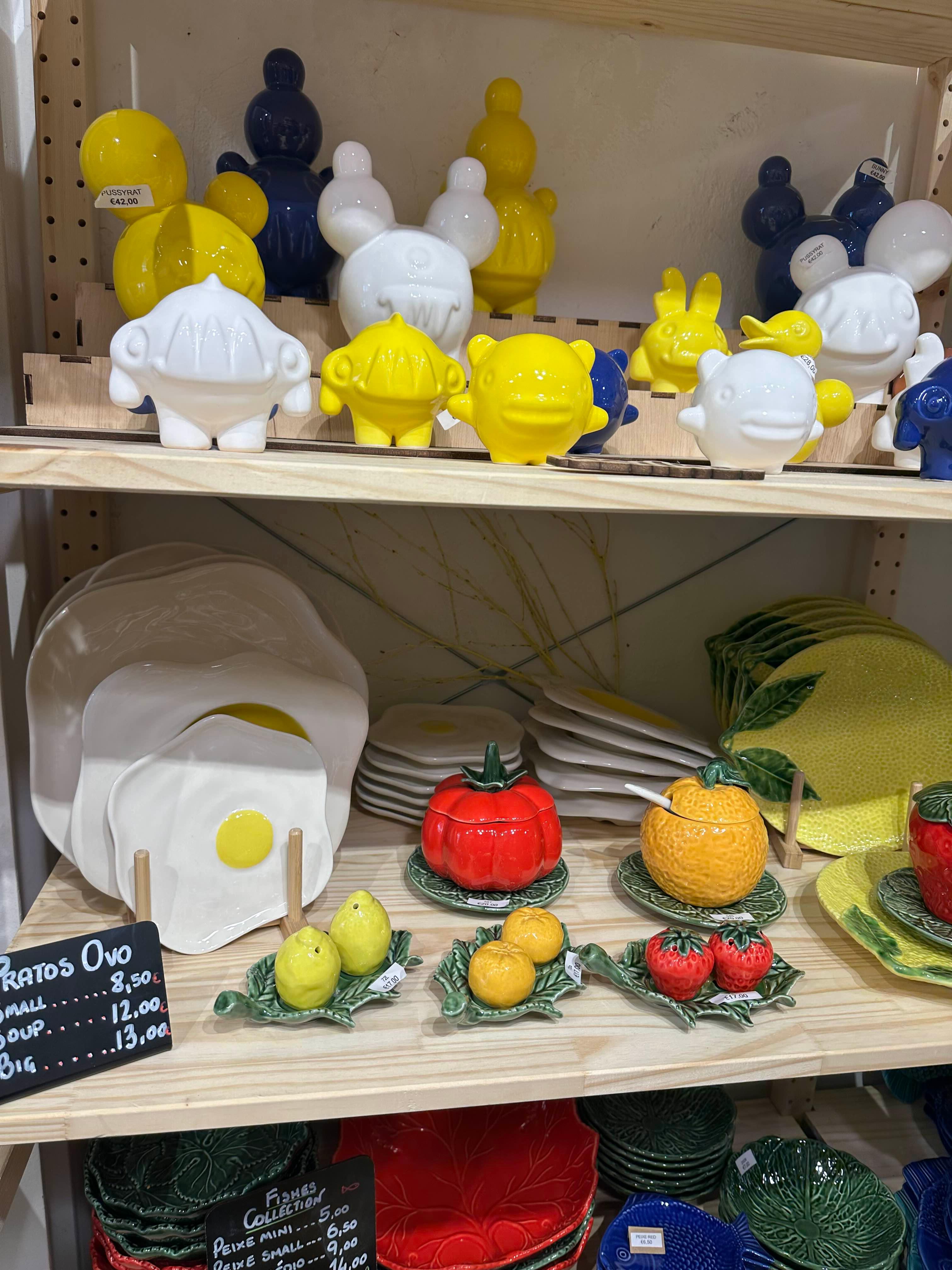 바닷가 근처라 물고기 모양 접시나 그릇, 장식품이 많이 있다.