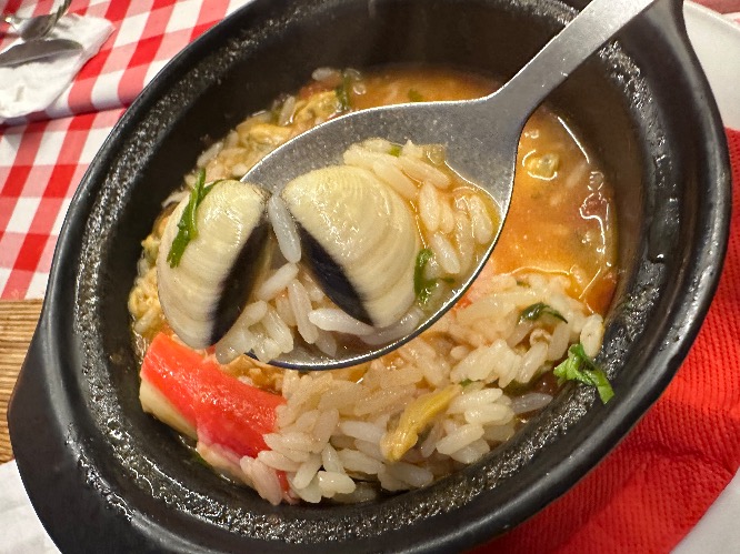 김치국물 아~주 약한 베이스에 간이 잘 맞춰졌고, 토마토와 새우, 홍합, 조개, 게맛살(?) 같은 게 들어있다. 맛있다.