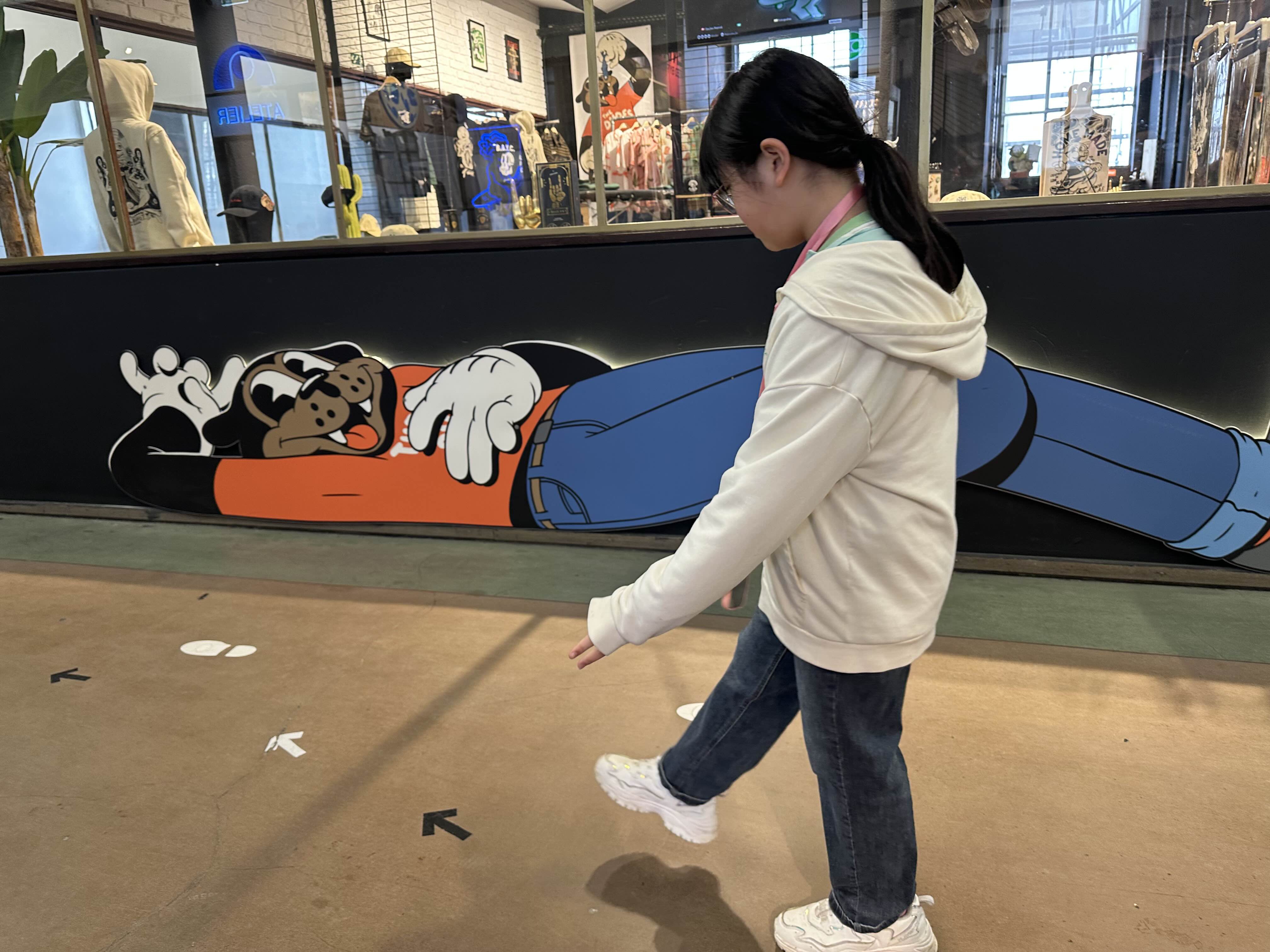 길을 걸어가다 보면 좌측 식당 벽에 어릴 때 뜯고 조립하면서 놀던 플라스틱 장난감 모양의 장식이 걸려있다.