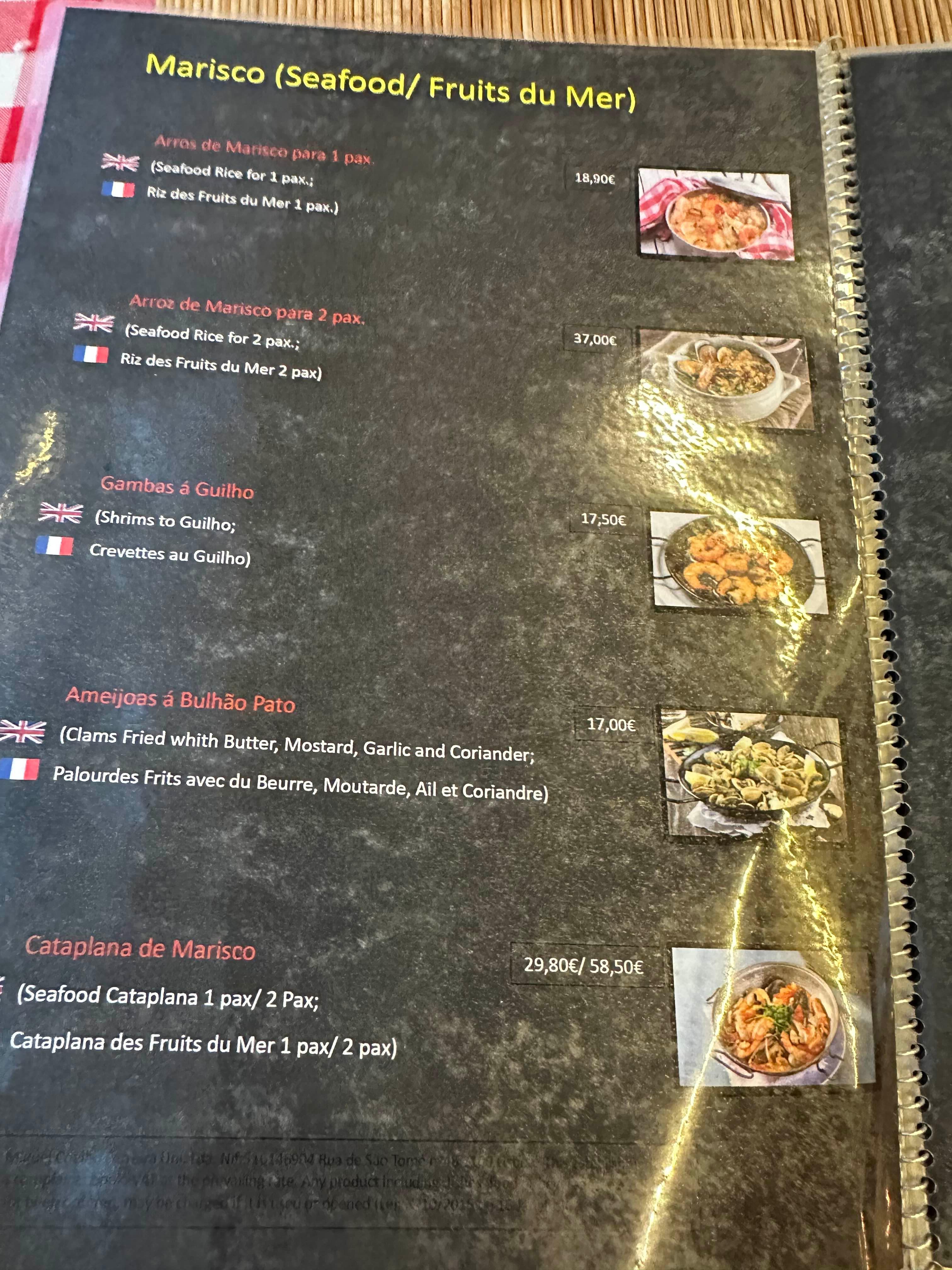 하는 수 없이 로컬식당에서 해산물 종류의 저녁을 먹기로 한다.