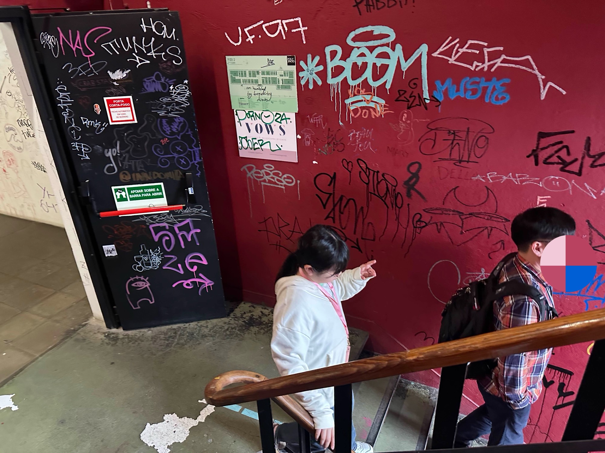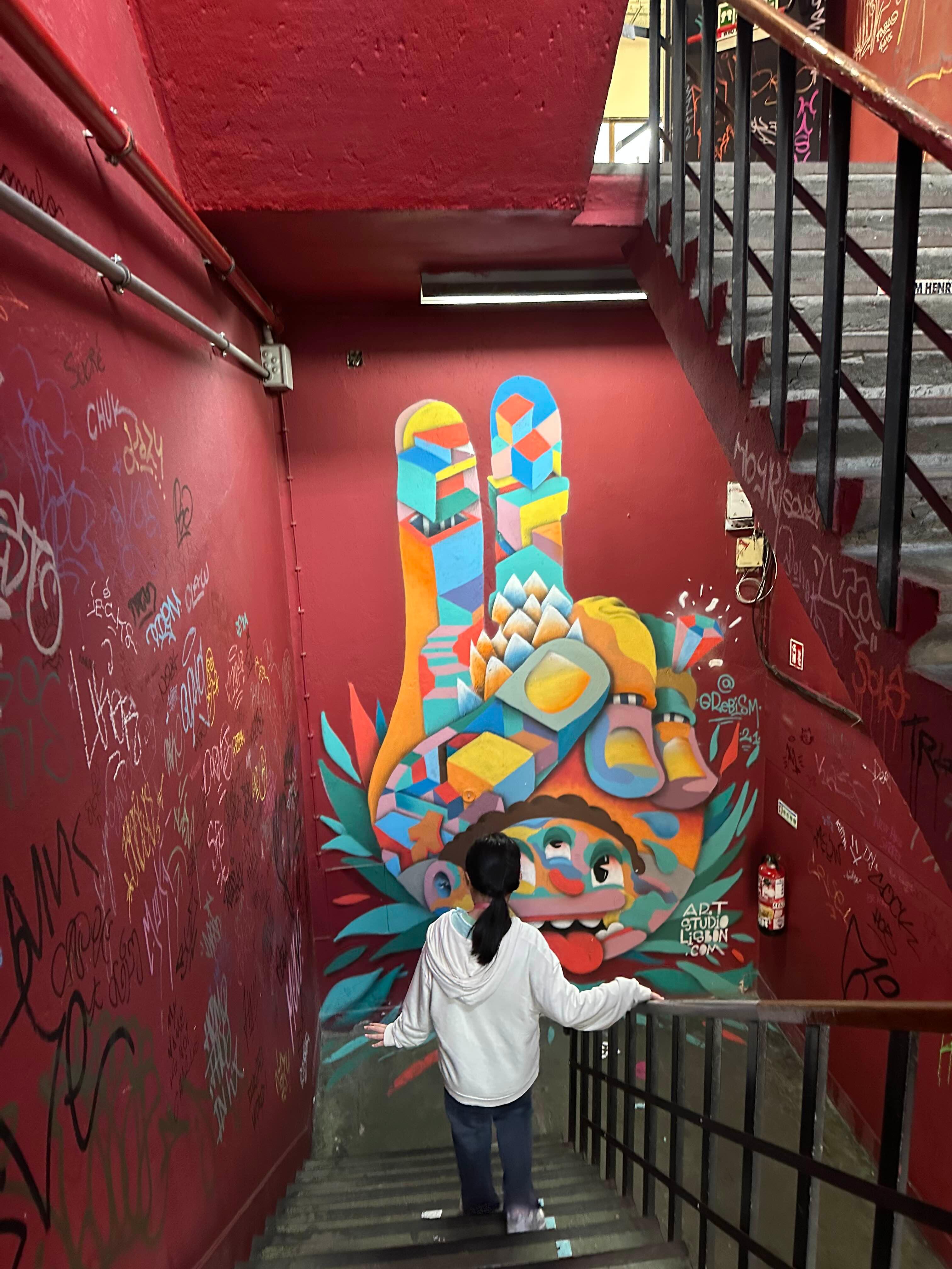 각 층별 이동하는 계단에 그레피티 아트가 많이 있다.